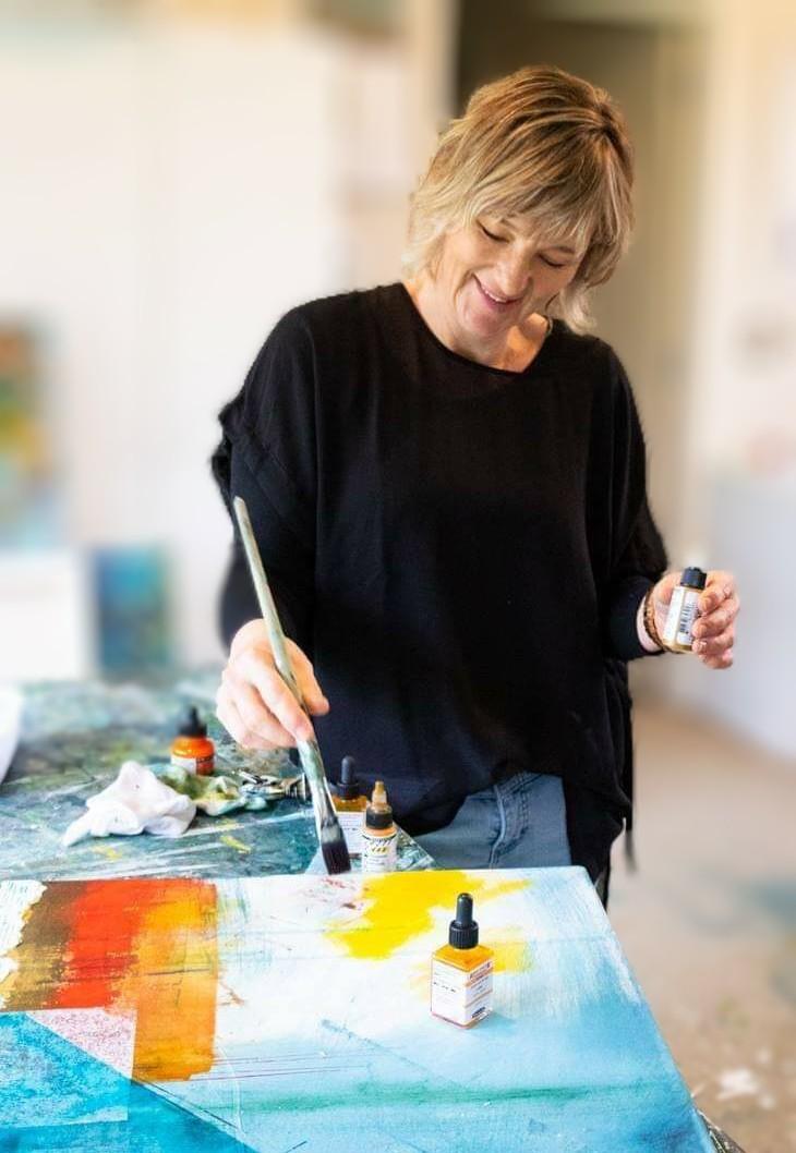 Julie is an established artist from the Waikato. She creates vibrant original mixed media pieces, using colour and form found in nature. She lives rurally in the Waikato region.